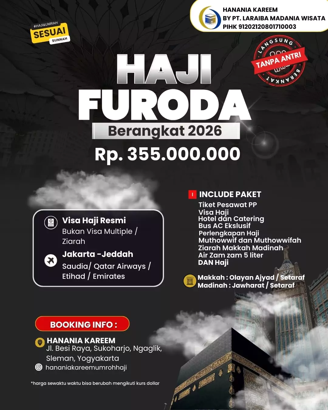 Paket haji langsung berangkat tanpa antri, resmi, aman, dan pendampingan profesional penuh.