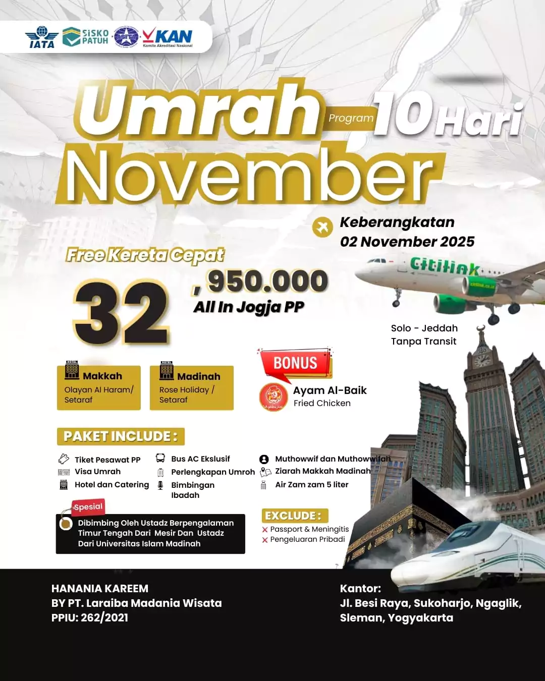 Paket Umrah November, perjalanan spiritual nyaman, bimbingan profesional setiap saat.