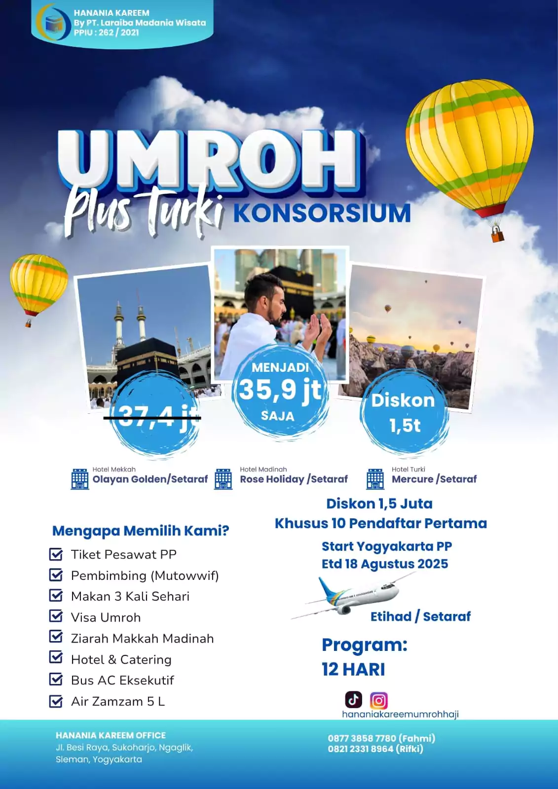 Nikmati perjalanan spiritual dan wisata bersejarah ke Tanah Suci dan Turki.